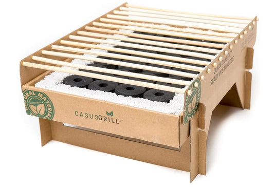 Casus Einweg-Grill, biologisch abbaubar, Mini-Grill: tragbarer und Einweg-Grill, aus natürlichen Materialien, einfach aufzubauen
