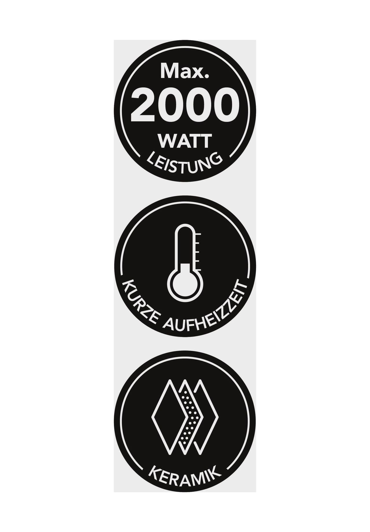 Drehregler, 2 Leistungsstufen (1000 und 2000 W)